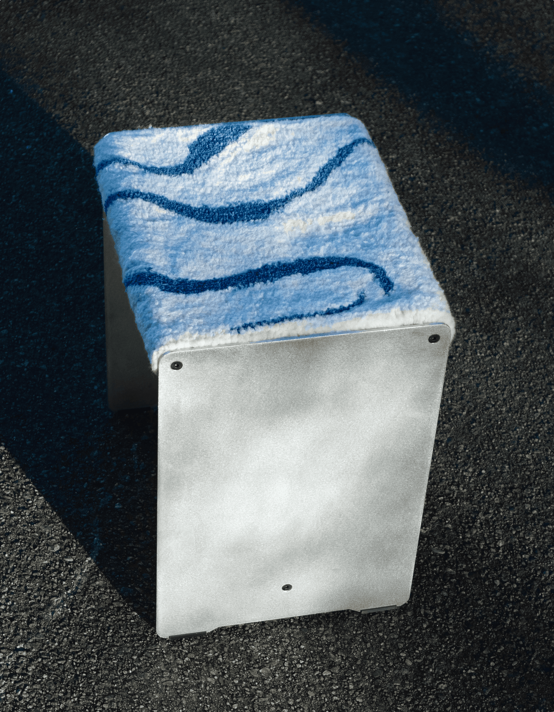 The seat varies in expression, making each piece unique. In contrast to the raw, cold aluminum, it adds warmth, softness, and a more personal character.